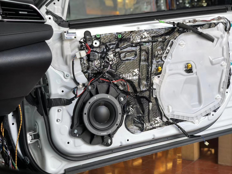 【丰田凯美瑞】音响升级,前门丹拿372三分频,中高音A柱倒膜安装,后门232两分频,两台i-sotec H4四声道功放推动,一台捷力1000.1单声道功放推动DLS竞赛级低音(尾箱左侧补型箱安装),阿尔派A09无损播放器做音源。