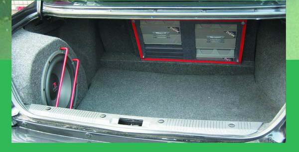 后尾箱的加强低音由FOCAL 33V2担纲重任,选用先锋GM-X552来推动。FOCAL 33V2灵敏度达到90dB,频率响应在30Hz至500Hz,令整个车内超低频段音质的表现达到了完美的效果,力度感强,厚而不浑,丝毫没有疲软的感觉。我敢保证这是个看过的改装车中后尾箱最为整洁的,系统中的三台功放安装在尾箱挖出的槽中,对外部分用有机玻璃罩住,既美、观又能起到保护作用。超低音则安装在尾箱一角,对外用红色的护具进行保护。整个布局没有一丝凌乱,几乎不影响置物空间。